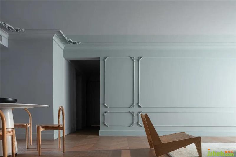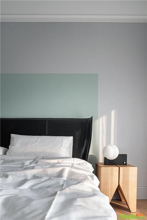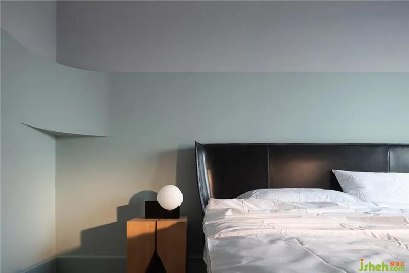 我们用最简单的材质去支撑卧室的界面,室内设计师水浅葱色的漆面贯穿全屋,在节省预算的同时也实现了空间细部的设计感。