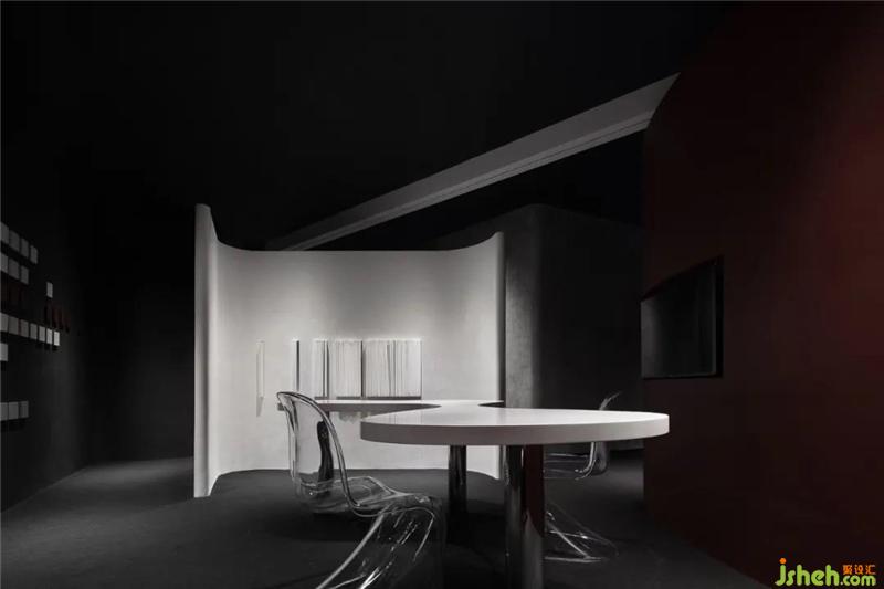在有限的空间内,我们没有对场域进行激进式的索取,而是选择了「退让」,这种「退让」看似是一种「浪费」,展厅装修设计却创造出更多的对话可能性,在趋同化的卖场里形成辨识感,从而达到商业引流的目的。