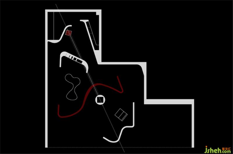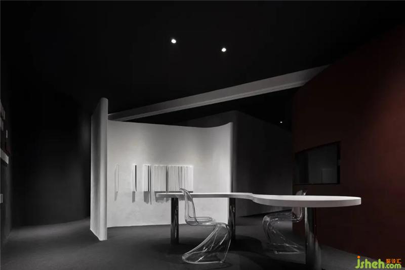 黑白灰围合的空间基底中,流动着一抹「红色」,带来视觉的冲击力,诱发进一步探索的潜意识行为。