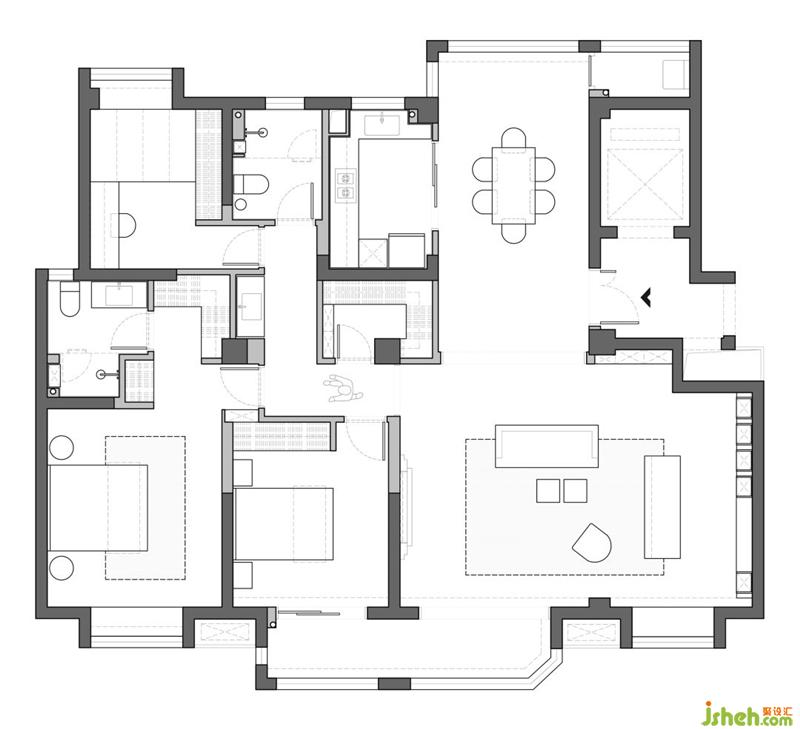 我们在梳理空间机能的同时也在为屋主定制崭新的生活方式。我们利用南面阳台的大面开窗,引入充足的光线,装修设计让光影在空间里留下时间的痕迹。开放空间中家具的陈列,营造出场域精神,壁炉的置入凸显了生活情调。