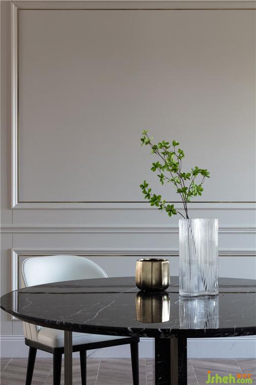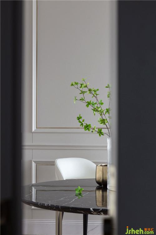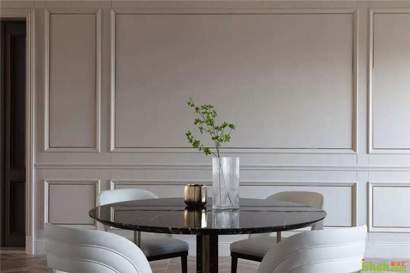住宅空间的尺度感对于拥有舒适的居住体验而言有着重要的作用,我们跟业主沟通后将空间进行清晰且合理的分布,室内设计师最大化贯通公共区域,让公共动线相对自由。同时我们严谨地处理界面,简化古典元素,并以具有现代感的方式呈现出来。