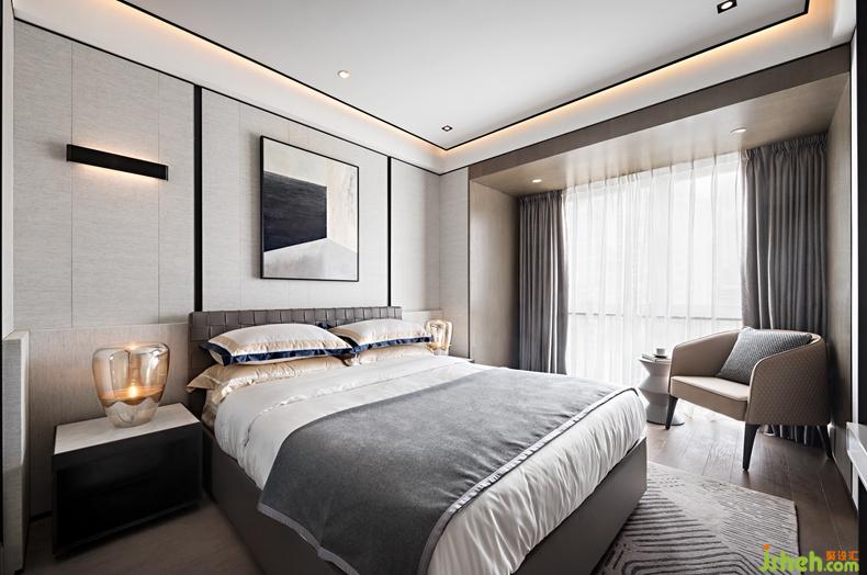 高级灰占据的卧室,弱化无足轻重的饰品,卧榻的地位被凸显无疑。墙面大幅绘画,选用弗洛伊德式的“梦”主题,如同一扇门打开远方。深圳设计公司