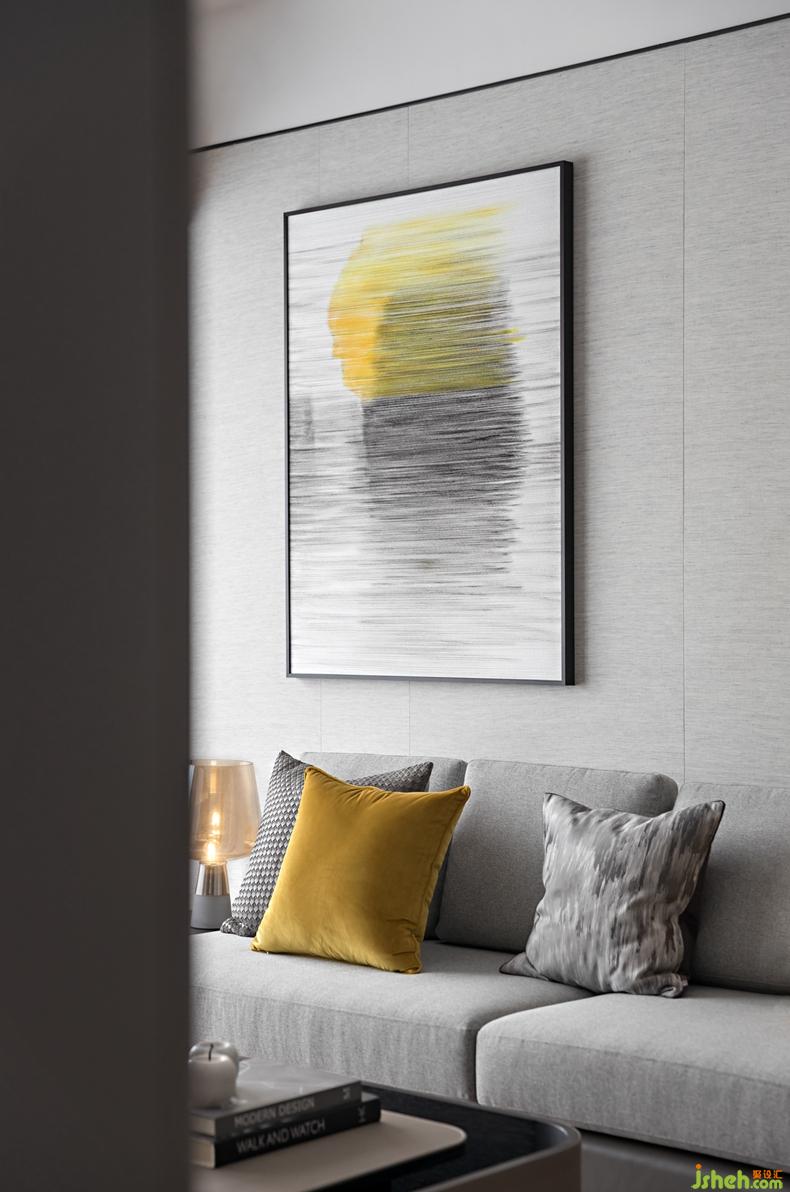 为改善现代主义机器美学的冰冷,设计师在材料上用足力量,让亲切感成为居住的重要体验。灰色墙纸的铺陈,原木的洗练,架构出客厅空间,主角是与生活息息相关的各色抱枕,绒布的细腻,亚麻的坚挺均有绝佳的手感。