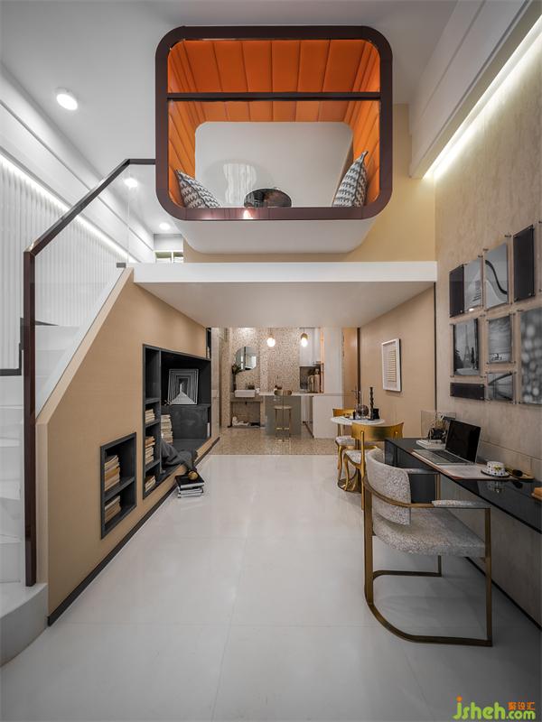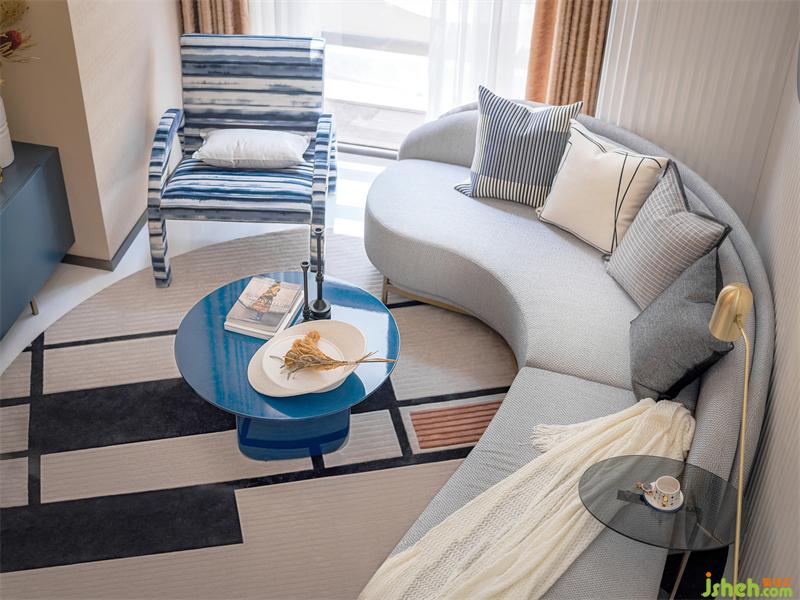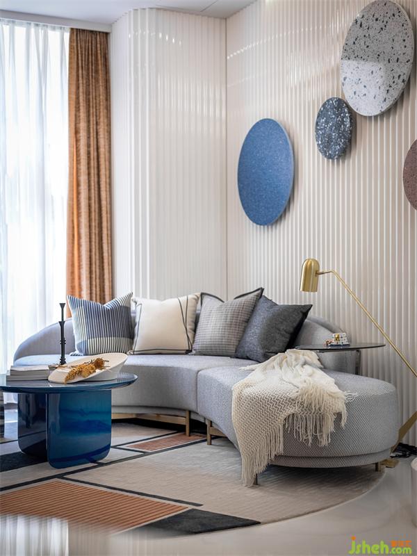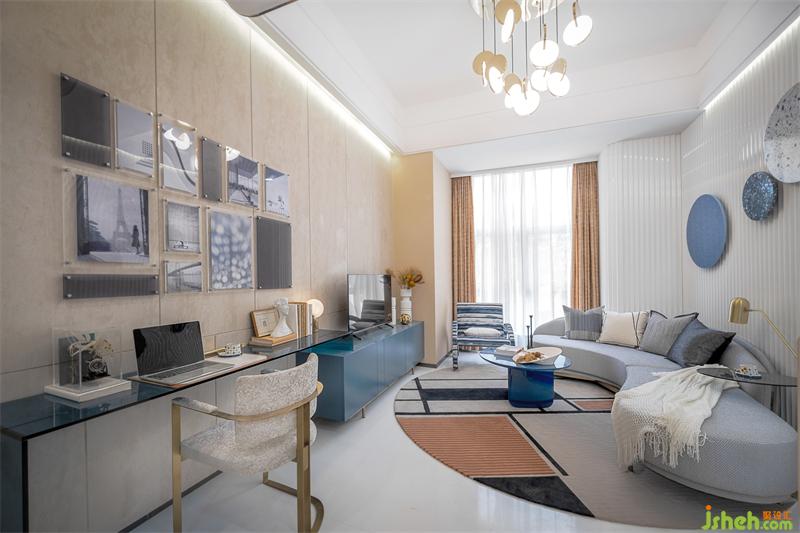 孟菲斯(Memphis)流派往往天真富有童趣。新型材料、活泼的色彩和富有新意的几何图案纷纷在这里邂逅。南宁样板房设计布局上打破横平竖直的线条,采用曲面和直线、平面的组合,碰撞出舞台般丰富的奇妙空间。