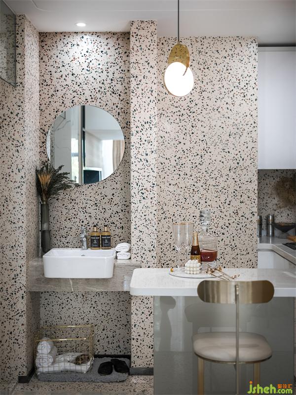威尼斯蓝与极具复古风情的水磨石结合,在任何小空间内都得以大放异彩,这种复古温柔的肌理让人在仿佛置身异国,身心得到全然的放松。