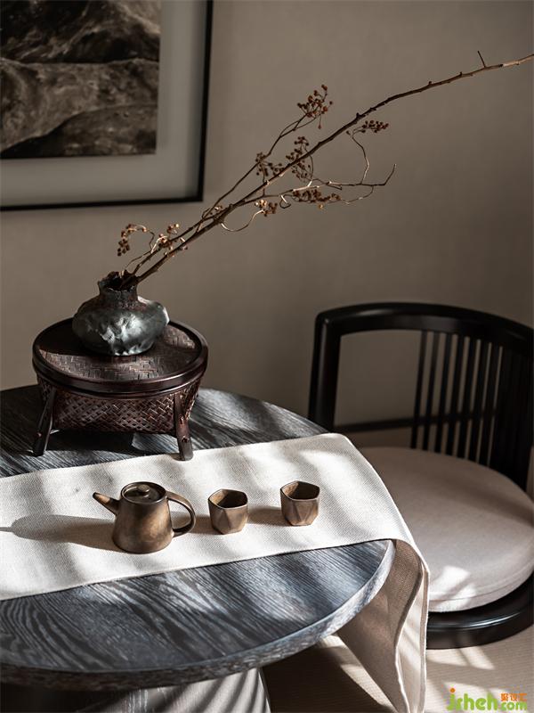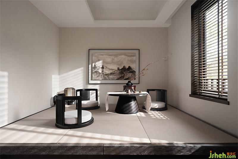 闽南爱好喝茶文化成为别墅的设计主轴,在二层,蔺草席铺就的榻榻米上围炉夜话,山间天籁成为最好的背景音。黑白灰的无色彩设计,退后成为背景,恰好为生活空间留白。