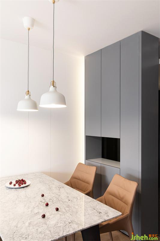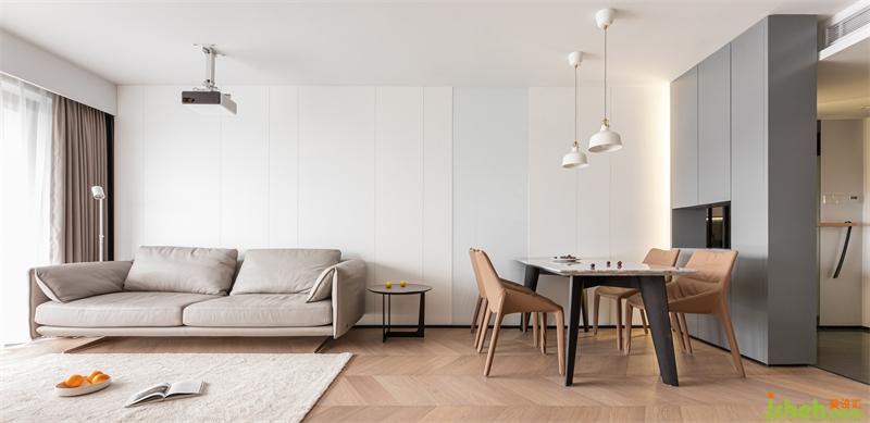 客餐厅背景白色烤漆板错落有致地铺排
