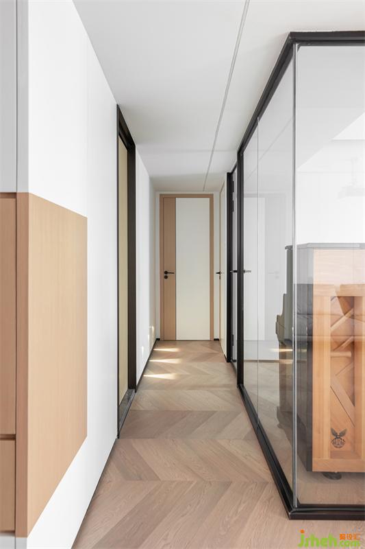 木地板采用鱼骨拼方式铺满全屋