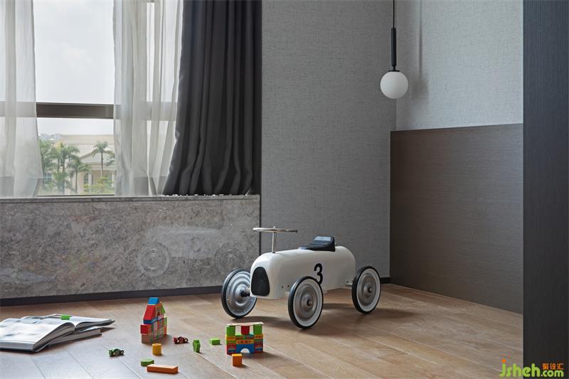 客房因业主暂不需摆放床品,前期设置为儿童娱乐室。当下每个家庭都非常重视孩子的成长环境,住宅设计中通常我们也会留出一定比例的空间提供给小朋友使用。让孩子们可以有充足的场地去探索世界、健康成长。