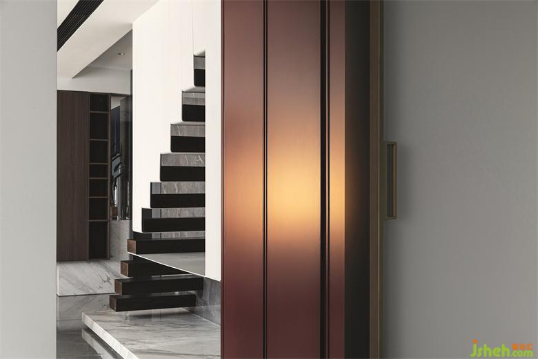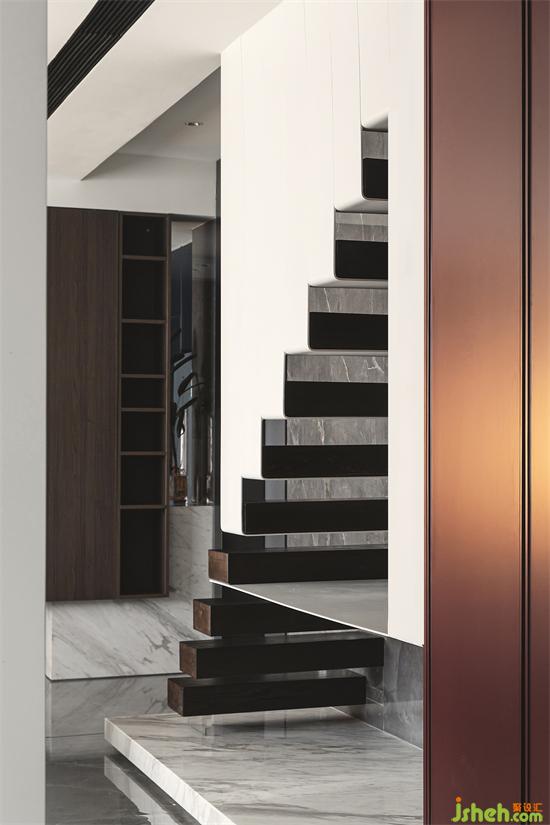 楼梯作为设计的一大亮点精心打造。木与钢的微妙结合,打破原混泥土楼梯的笨重感,同时后半部分用钢板作为一个搭配材质和辅助的拉力,家装设计拥有了材质视觉的丰富性,也消除了楼梯在长久使用下可能带来的松弛和变形的顾虑。