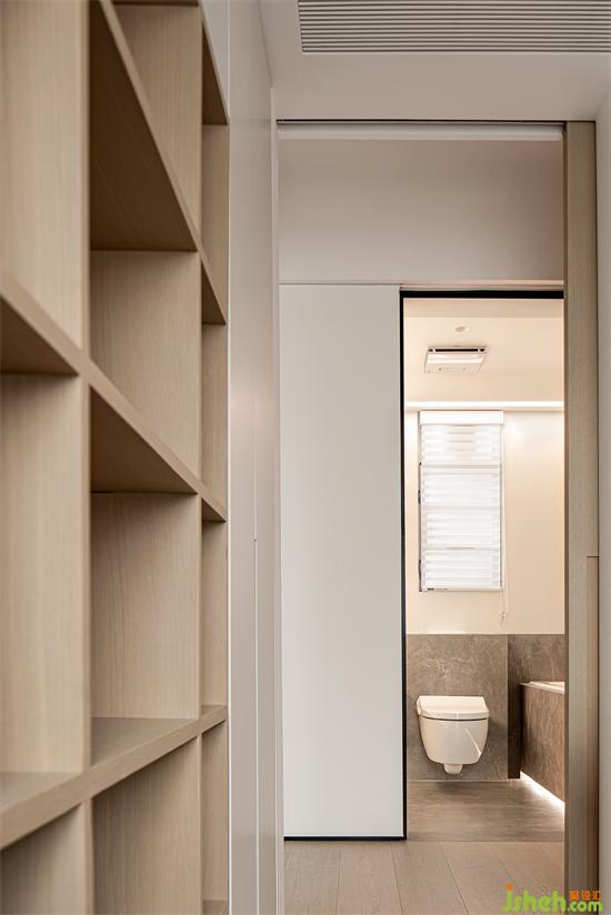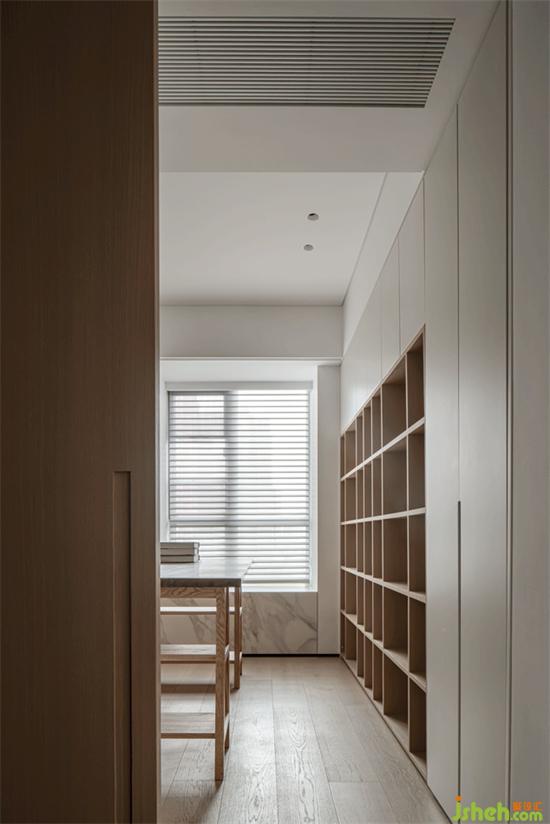 书房与主卧之间用移门分隔,不占用内外空间。业主对隔音没有要求,又考虑空调的节能性,此处移门是最佳选择。