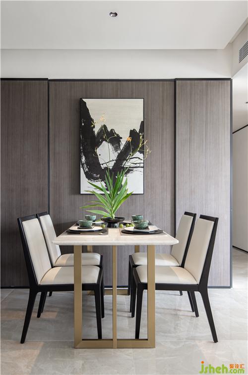 深圳融湖中心城三期样板间的设计正以这种雅致淡远的美感而动人。设计师运用东方的设计语汇,在空间中谱写出一首隽永又不失现代性的抒情诗。同时,设计师又将水墨画的笔法融入其中,既有晕染,又有留白,虚实相生、亦真亦幻,令人在古典意韵与现代节奏中获得了一种恬适的呼吸感,由内而外,身心安宁。