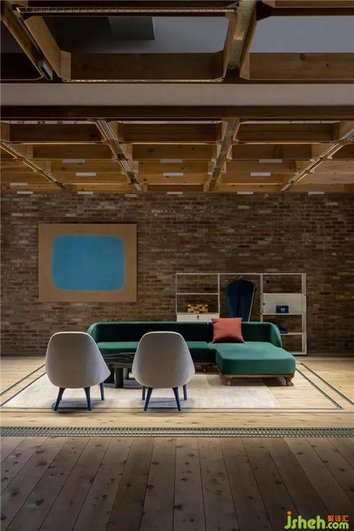 在空间情绪上,设计师以艺术家马树青【色.物体】系列作品,将抽象而热烈色块将视觉聚焦;此处策划之精妙在于,设计师利用了艺术的隐喻,将室内外环境对与艺术品的关系重新排列,产生新的情绪感受,在这样的空间中让人思静下心来思考、重温。