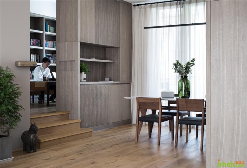 整体简约的空间上没有太多的装饰造型,大面积的木饰面与石材质的节奏控制是设计考虑的重点。