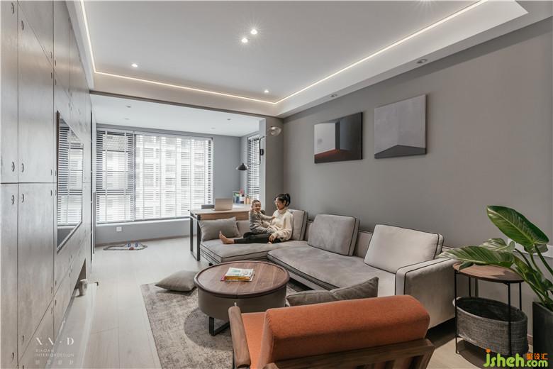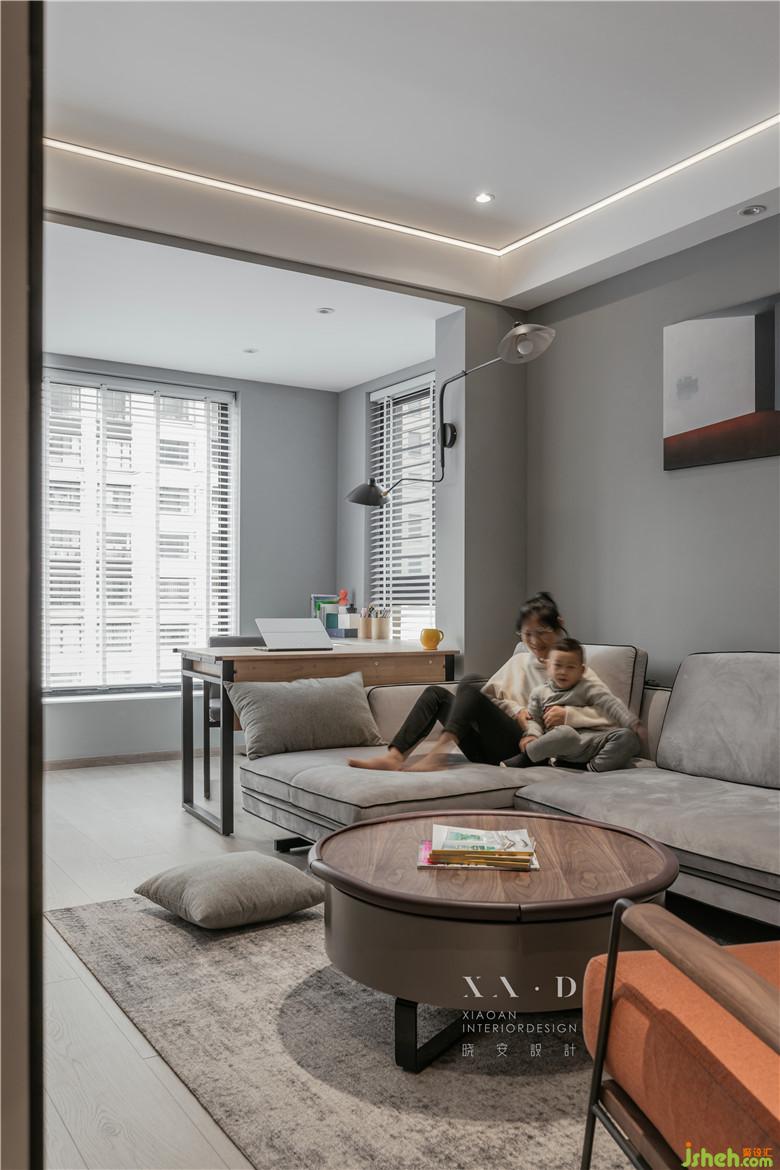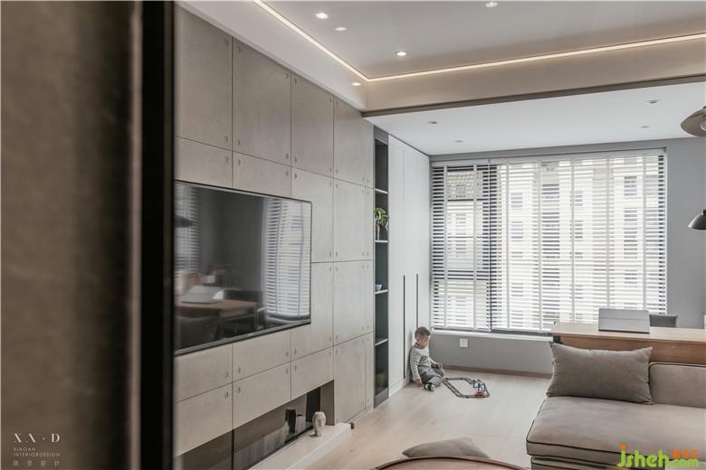 本案业主是一对夫妻和一个小朋友。夫妻俩在空间风格上有着共同的想法,对水泥质感的装饰情有独钟。为了方便交流,室内设计师将客厅和厨房、餐厅打通结合成一个区域,在各自做着不同的事情同时,可以感受到相互的陪伴,随时分享心情、阳光和食物。