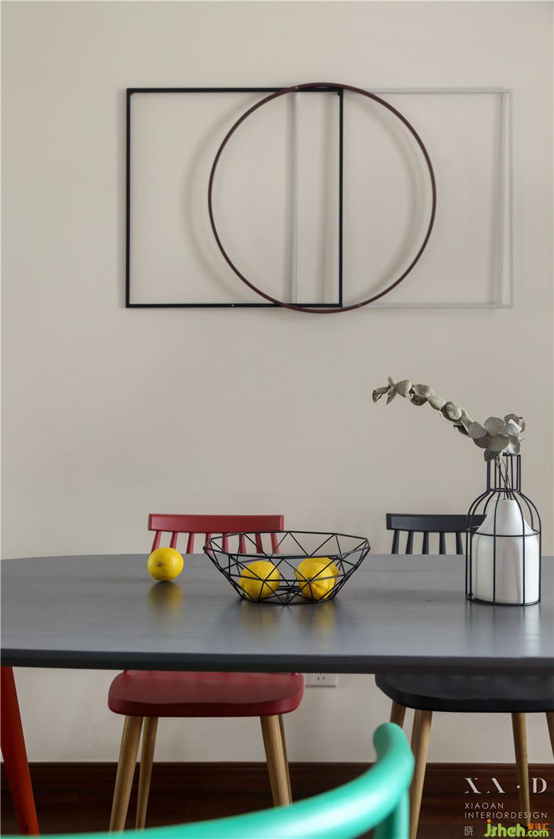 室内设计师使用黑木餐桌与红色餐椅相互衬托,待到厨房一通忙碌之后,餐桌上摆放可口饭菜,知足感油然而生。