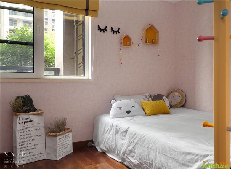 儿童房用粉色的墙作背景,尽显儿童的童真