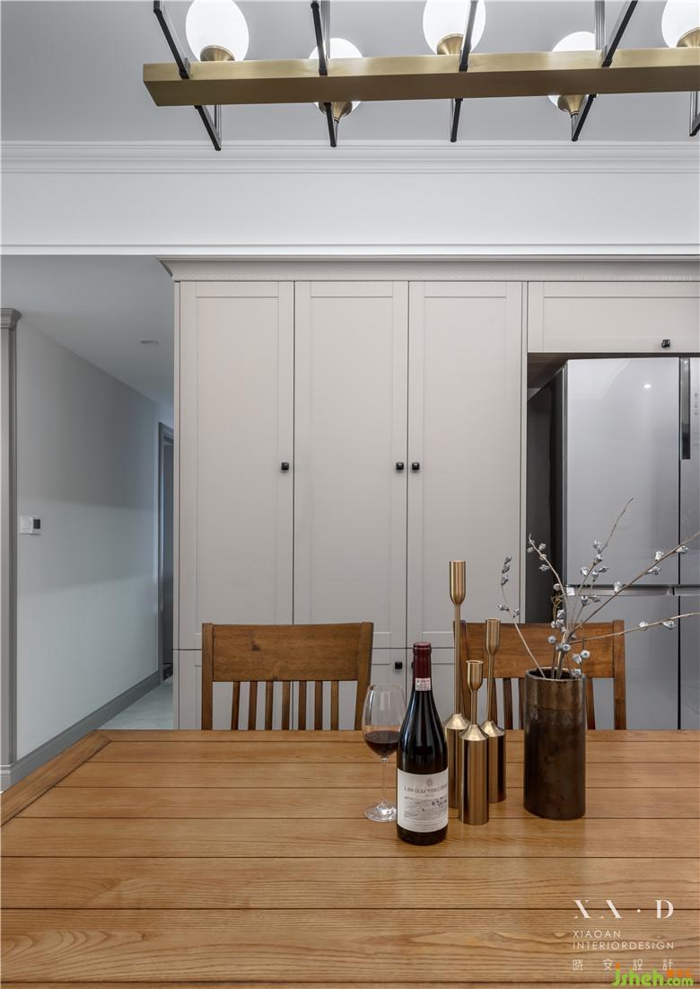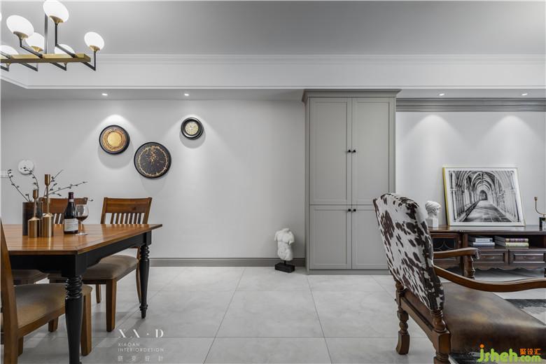 将父母房原本的赠送面积纳入房间,过道设计的装饰展示柜和父母房衣柜背靠背,节省了空间,这样父母房间的实际使用面积也能达到一个舒适状态。