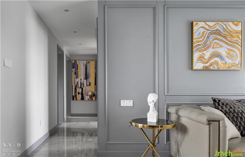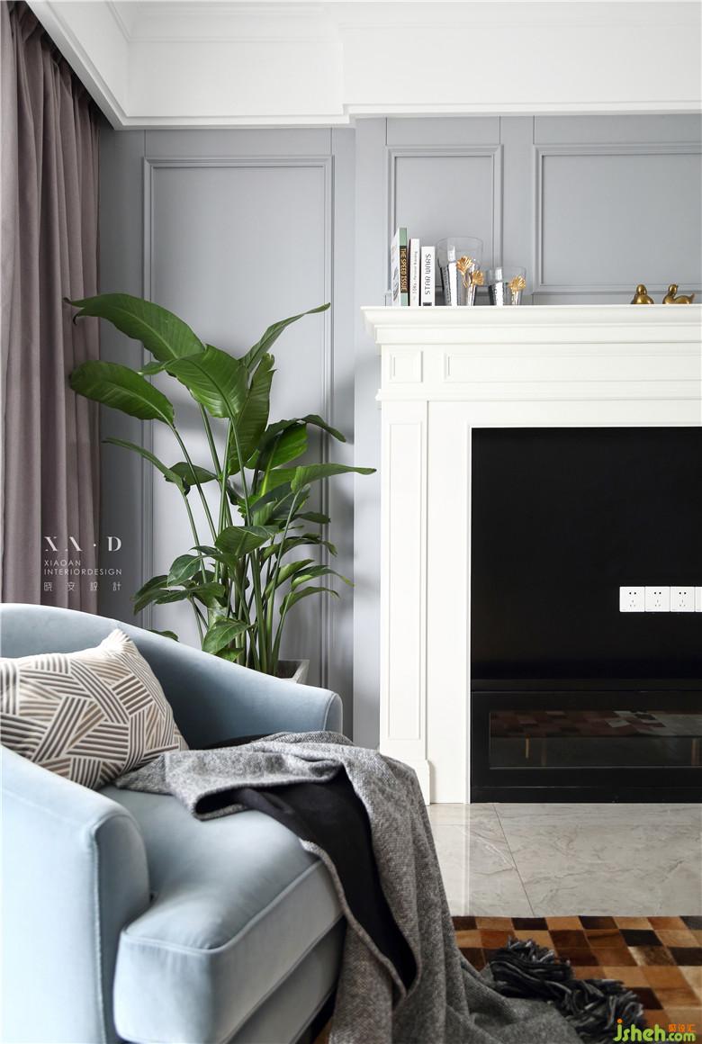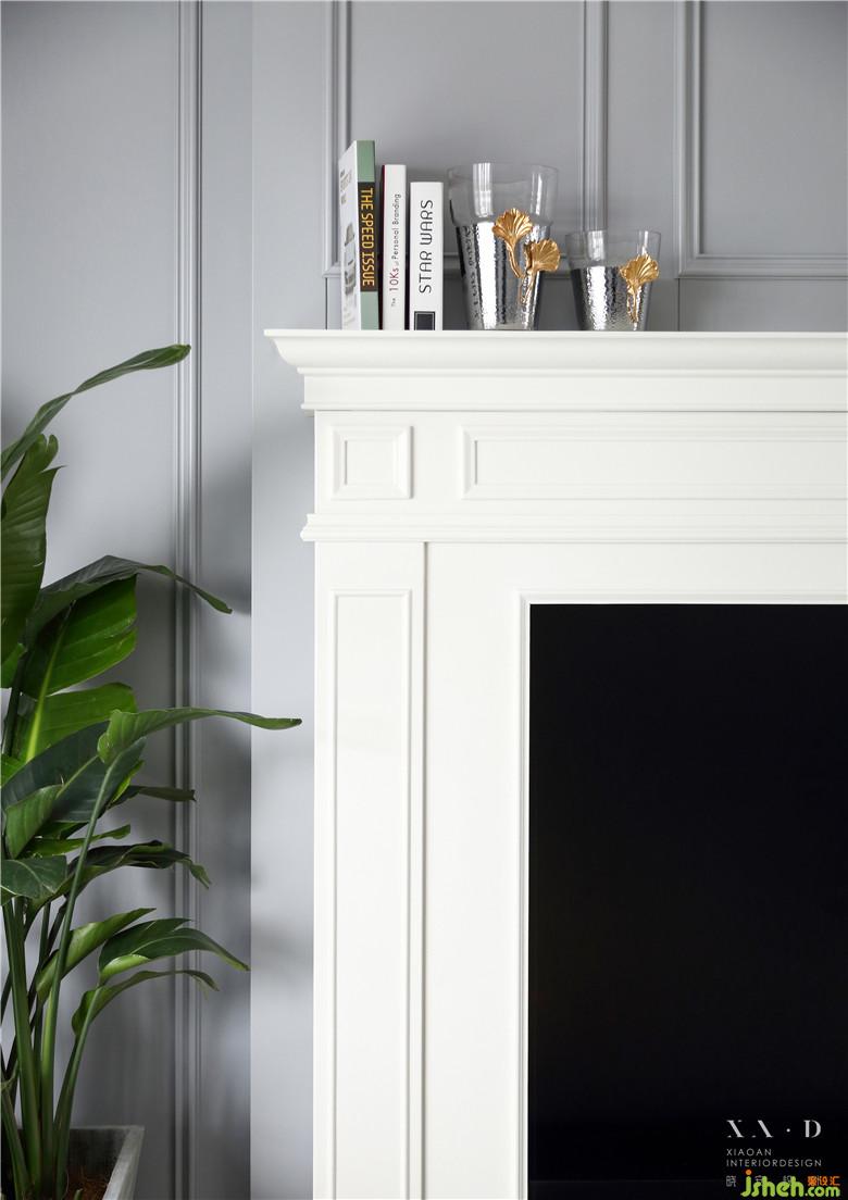 在前期的沟通中,女主喜欢美剧电视中的壁炉,既温馨而又优雅,希望在新家里加入这个元素,室内设计师将电视与壁炉的造型结合,完美的融合于空间。