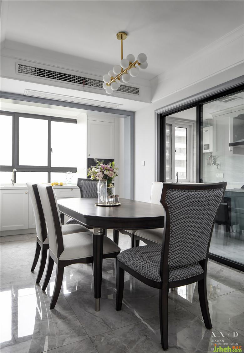 餐厅的北阳台,室内设计师合理的划分为西厨区释放了中厨,让各个空间各司其职,提高了空间的便简。