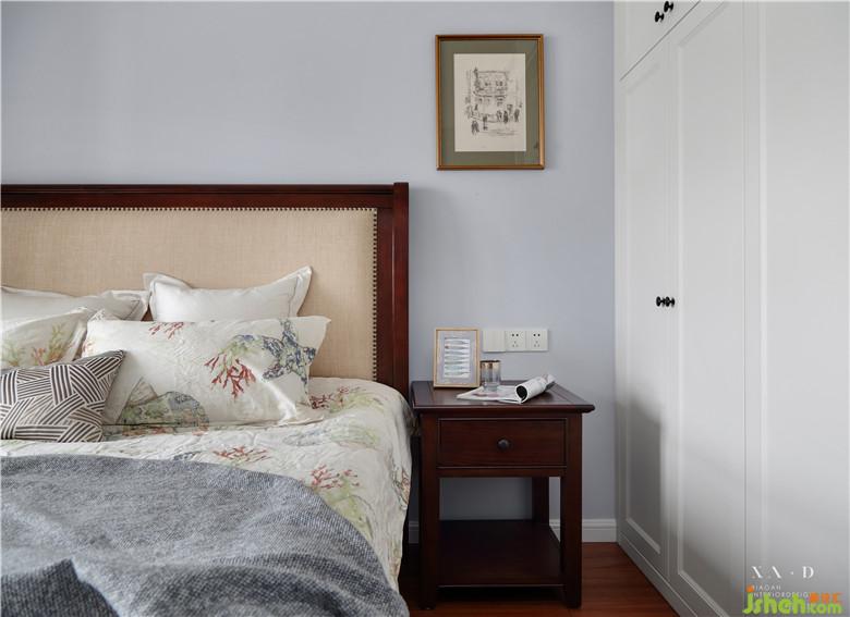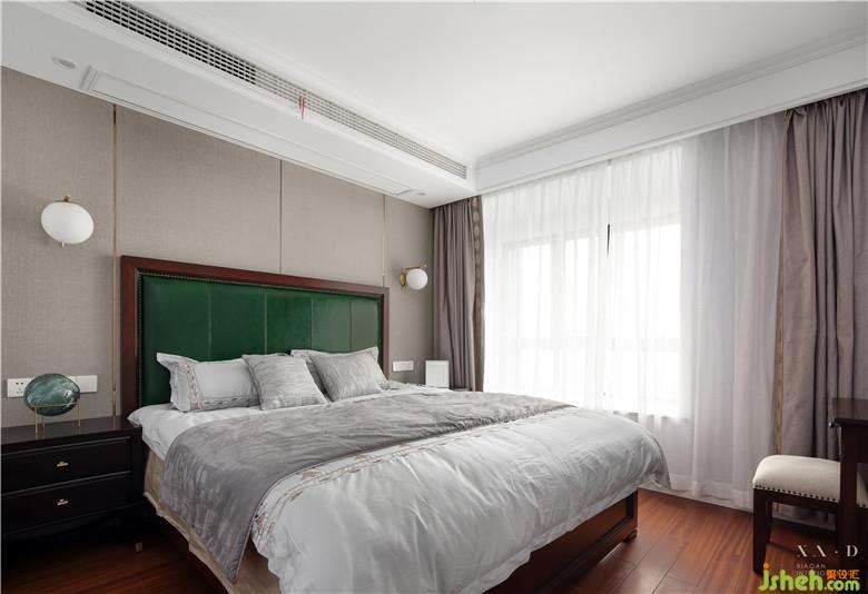 主卧的硬包打破了空间的沉静,温馨又自然强化了空间的质感,提炼案子的奢美。