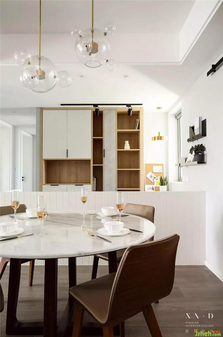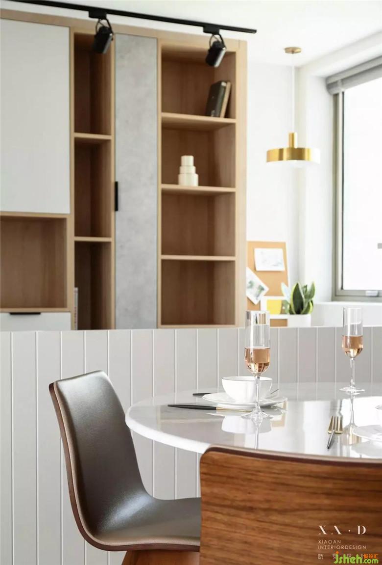 原本的餐厅空间利用率不是很高,所以室内设计师在原餐厅空间增加了现在所需要的书房功能,开放式的书房,增加家人之间的互动。