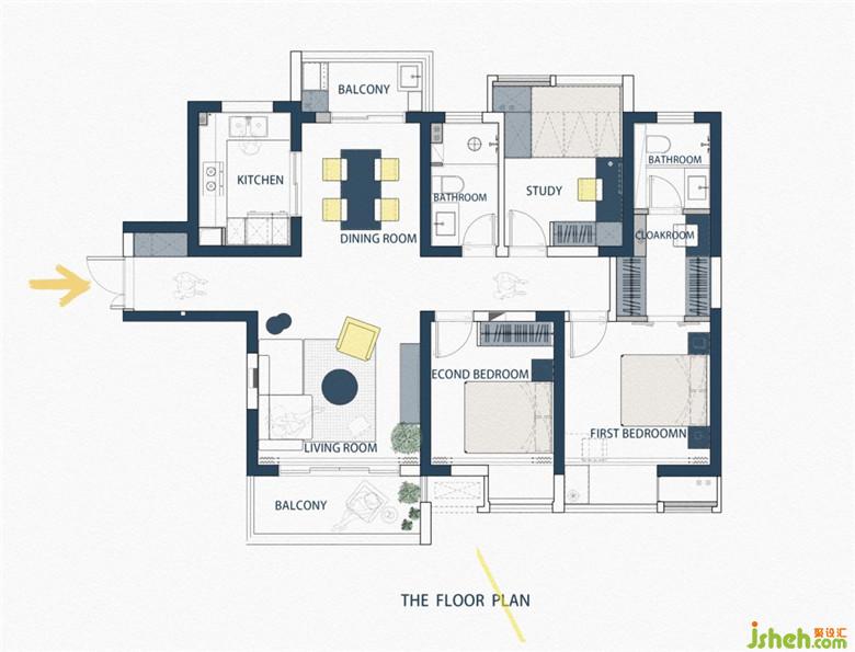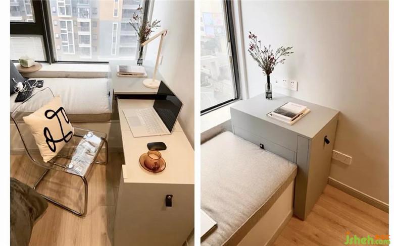 装修公司选用次卧家具虽少,却布局轻巧,富有小情调,床、桌、柜安排得宜,不浪费半点空间。