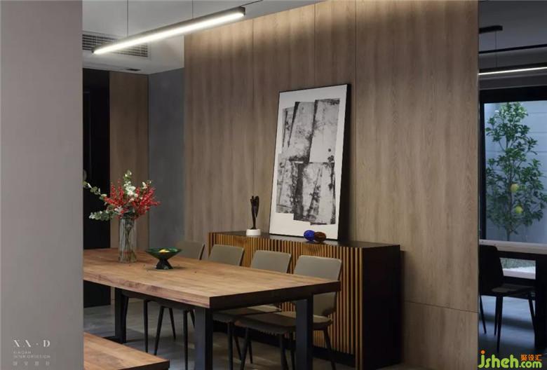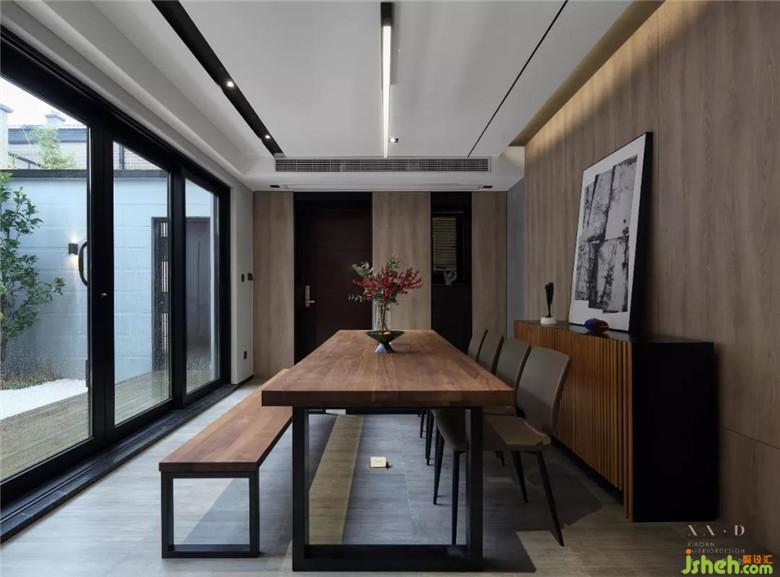 宽敞的玻璃窗让光线在室内追逐,天然的光源让餐桌上的佳肴变得更加色彩诱人,惹人食指大动。木质的长桌长椅,与窗外的风景相连,更像是窗外树木的衍生,充斥着自然的清新与悠然。