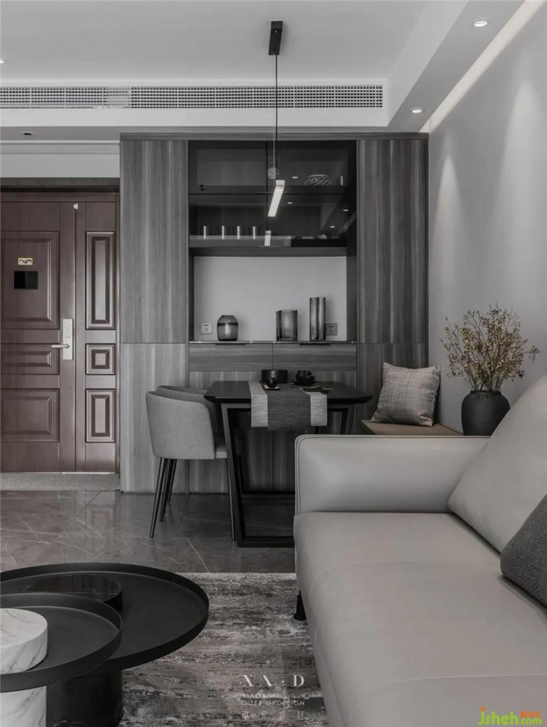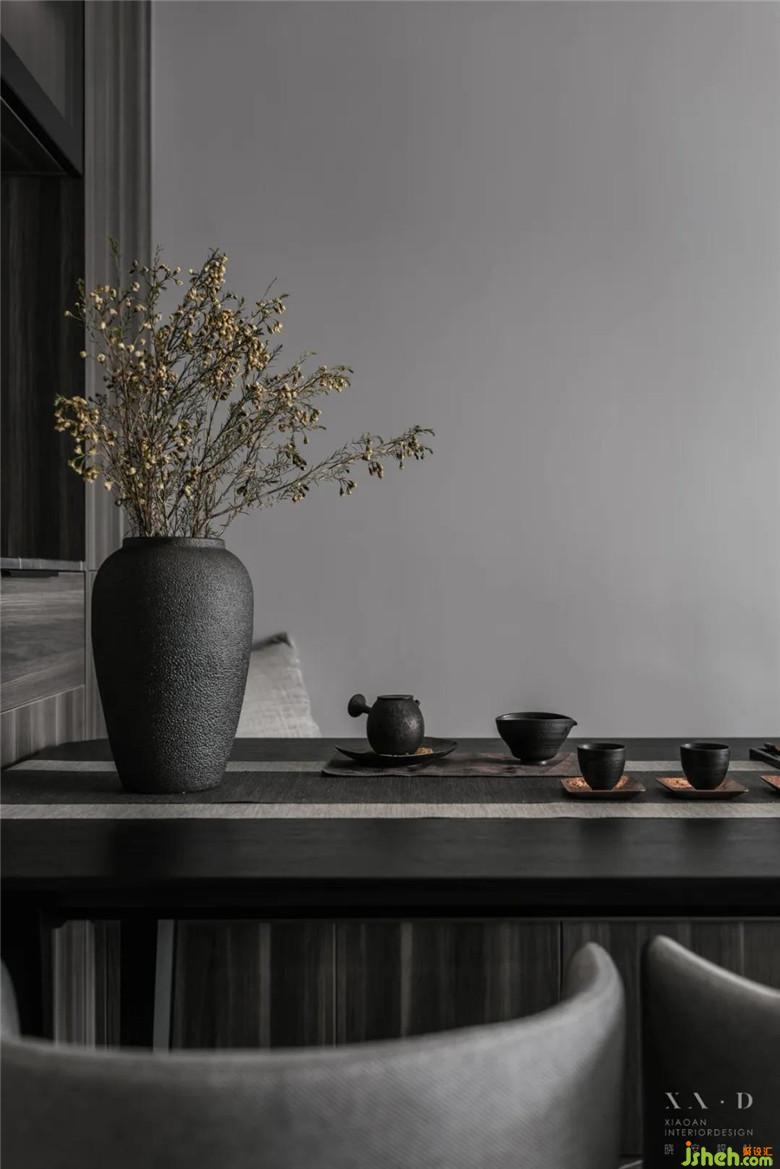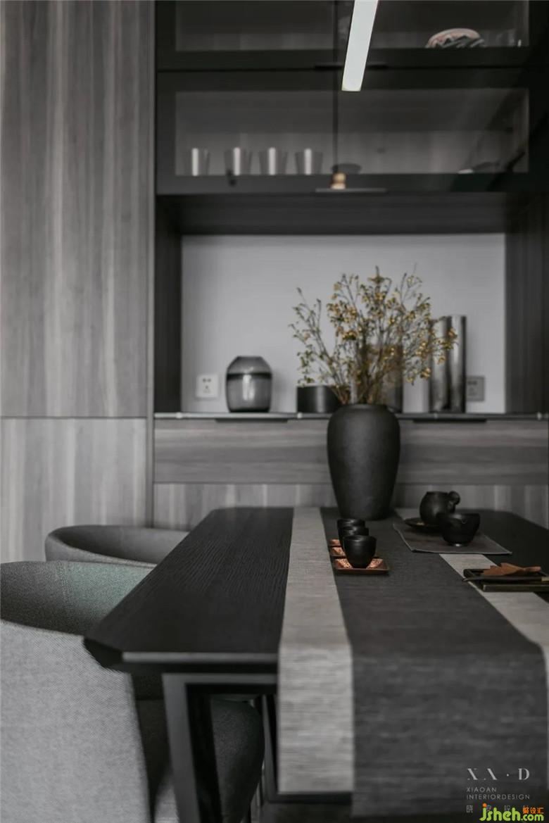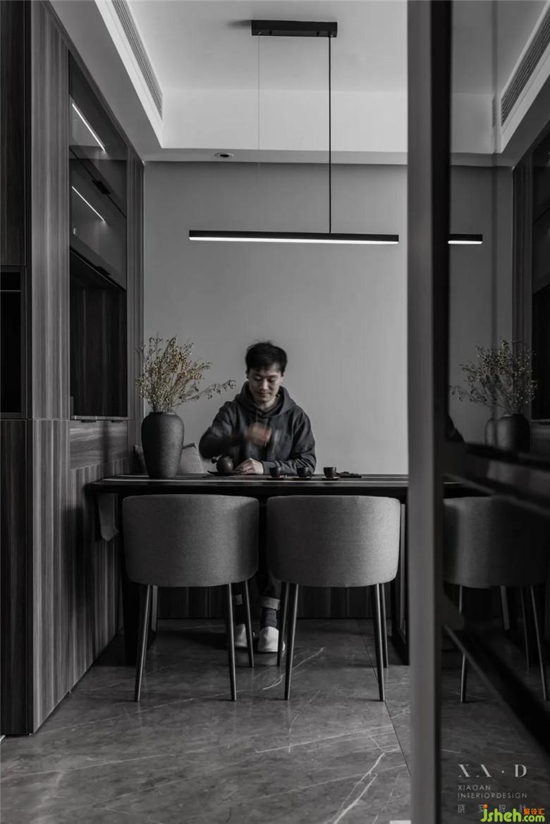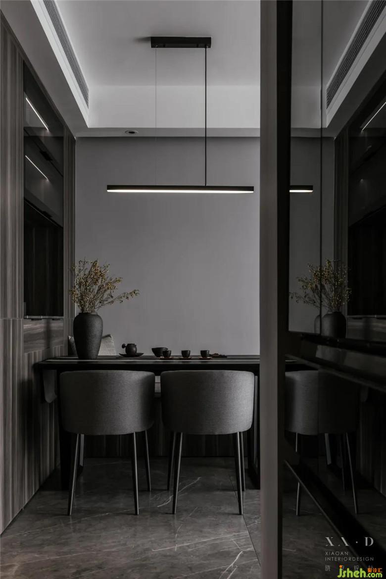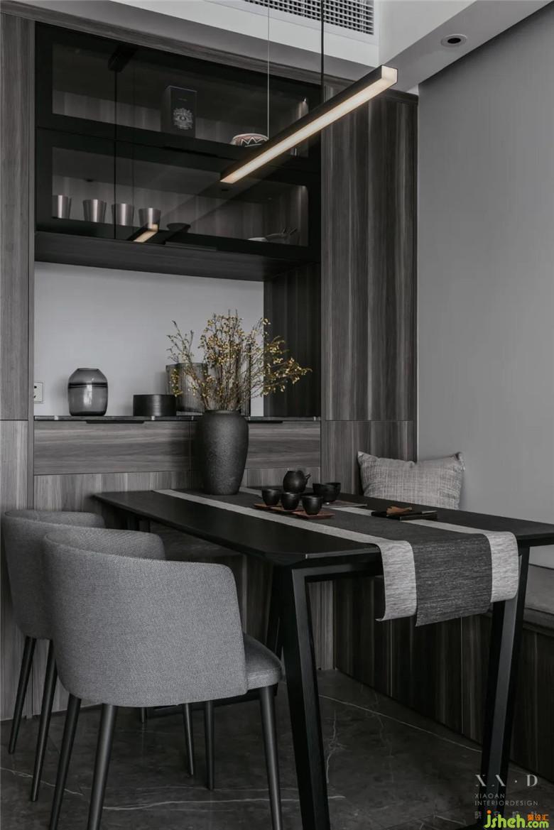 ▲ 装修公司将黑灰色系大量运用到餐桌空间,让这片区域变得低调又沉静。