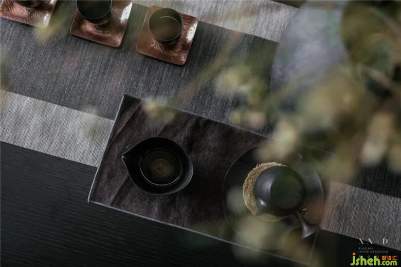 ▲ 黑金搭配的茶具,给餐桌增添了一抹华丽又不艳俗的亮色。