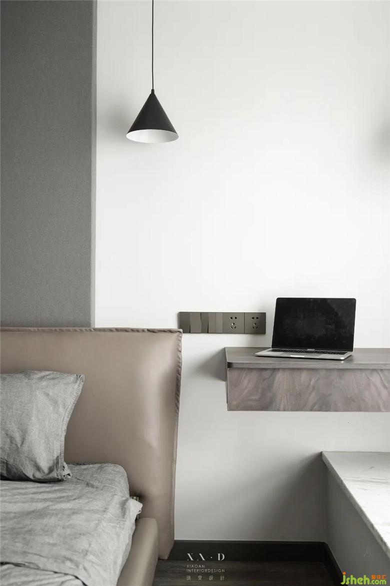主卧皮质的床头光滑服帖,表面极为低调的光泽感,装修公司让轻奢的现代气息油然而生。悬空式的办公桌,不会让室内的空间显得逼仄,又提升了房间的功能性。
