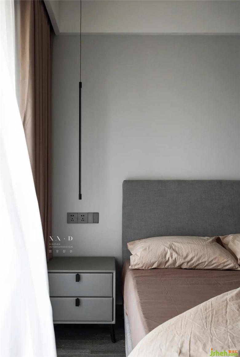 醇厚的灰棕色调,让次卧宛如一位沉静的妇人——优雅且贴心。房间中陈列品极简的线条与外观,润物细无声地为日常起居提供着便捷的功能。