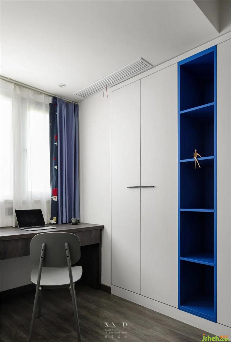 对于孩子来说,房间是他们学习、玩耍的私人空间。明媚的蓝白色彩,让房间里被梦幻畅想所填满。依窗而设的书桌,把最新鲜的空气、最自然的光源送到孩子身边。