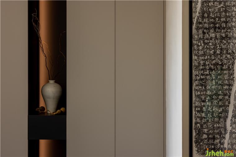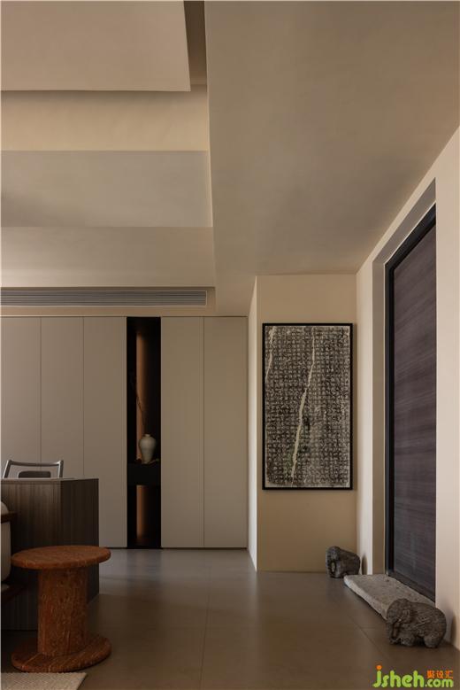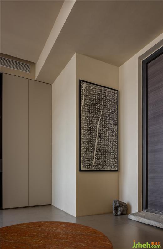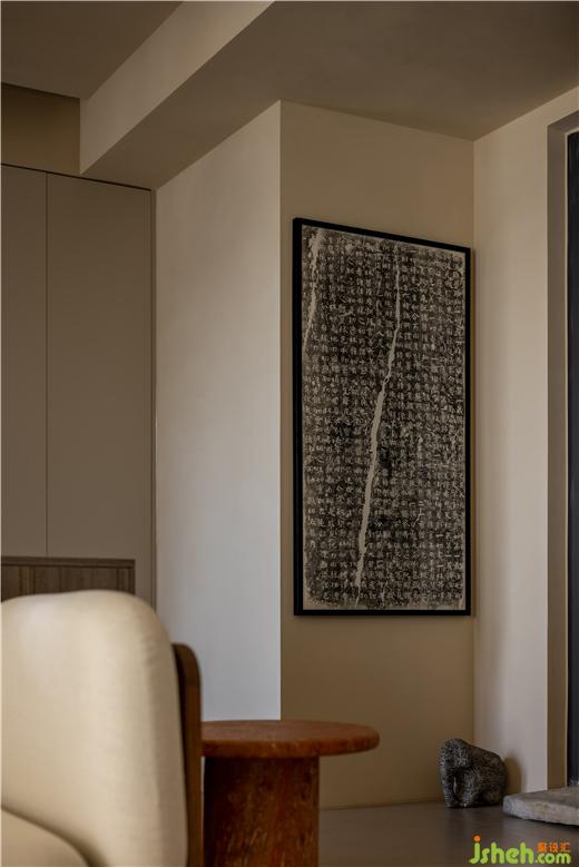 门口的东山之石、两侧的青石象、墙上的碑拓,都是男主人的收藏,运河与岸装修设计有的是机缘巧合下淘来的老旧物件,有的是想方设法才觅得的心头好,第一眼看到它们就觉得很有眼缘,这些合乎心意、情有独钟的物品,构成了独一无二的玄关。