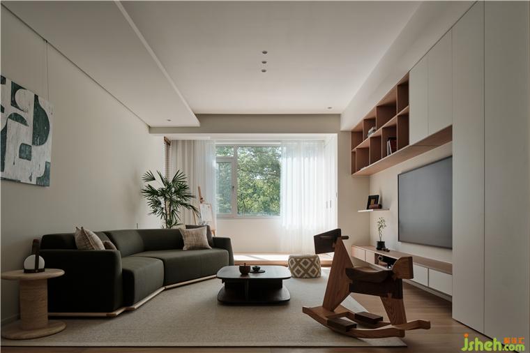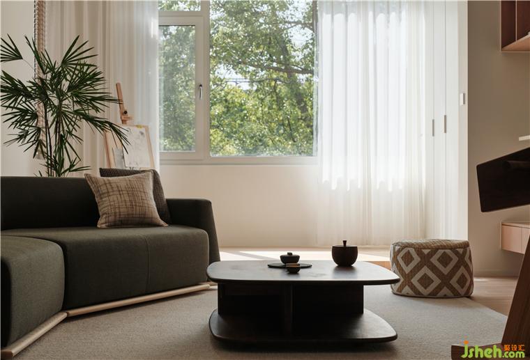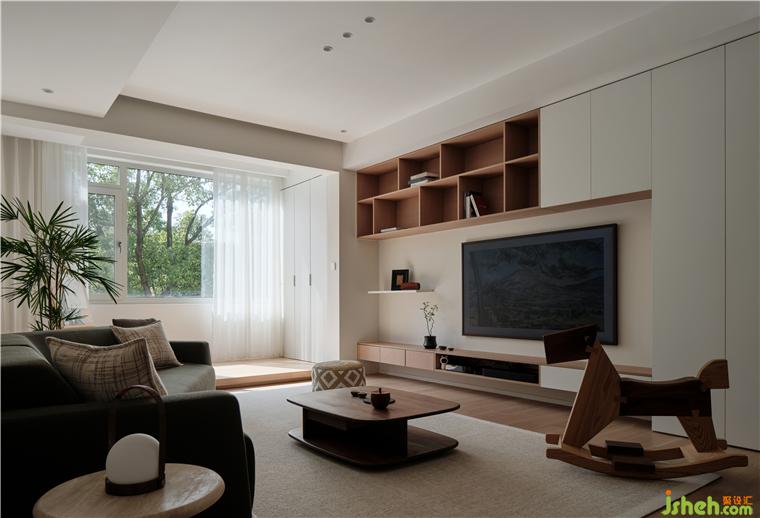 家装设计借结构关系迎接日升日落的变幻之美,透过窗框视角保留自然意境,让绿意呼应空间内部的木元素,营造置身自然的轻盈松弛状态。构建地台,再次扩展自然调性,省略冗余陈设,以借景手法联通内外,为精神世界空出一处静享区域。