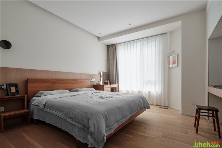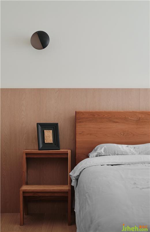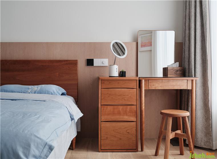 家装设计调节不同色调与质感的分布形式、呈现比例、搭配意趣、实际功用,构建出三个场景,契合睡眠、梳妆、阅读的不同诉求。