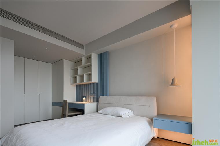 师惠花苑装修设计借粉蓝装点桌前与床头,不同区域内,差异化的材质舒叙联动,张弛之间,包含了丰富的情感流动。在明澈、温和、静谧的空间内静观内在,一点点地寻味。