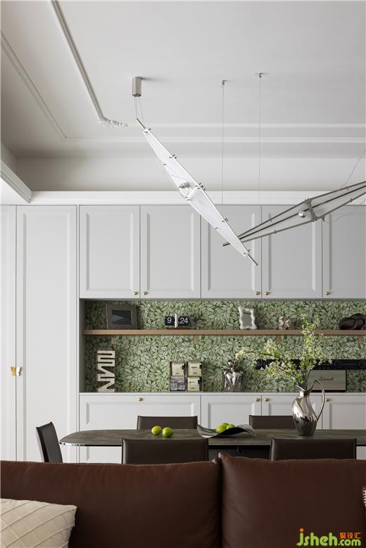 千鸟格沙发伫立一旁,等待着主人归来,为他涤去一整日的疲惫。浅绿色的花砖与绿植相呼应,天鹅港豪宅设计为空间润色,恰如其分地展现了法式的精致与清新。每天打开窗帘,就能够感觉到身心舒畅。