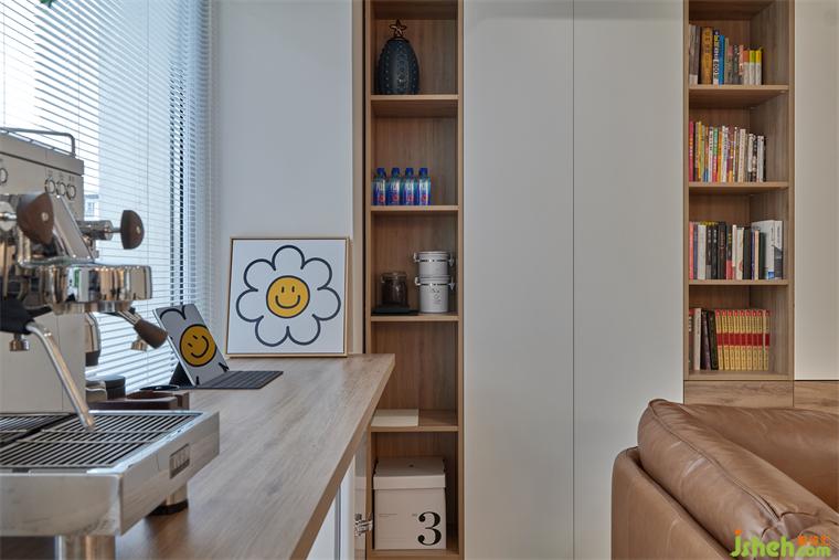 开放式书房,是空间留给主人的惊喜,甄选轻盈的视感与天然的质感,构建静逸恬适的环境。交叉错层的柜子与层板,收藏着各式各样的趣味摆件,展示着主人的丰富内心,亦是热爱生活的专属美学与真挚表达。