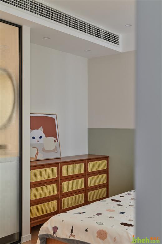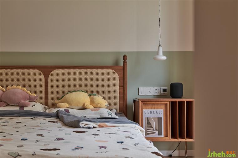 柔和的色调描摹出春天的味道,在平直利落的分割线中,激荡出柔情,床头别致的雕刻装饰造型与富有人文温度的编织纹理,赐予我们高质量的栖居环境。散落各处的卡通元素,则是启动欢笑的触发点。