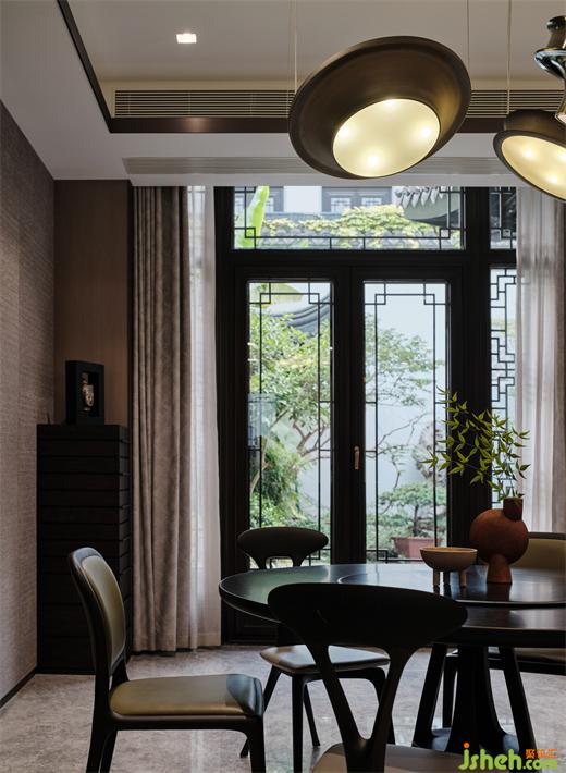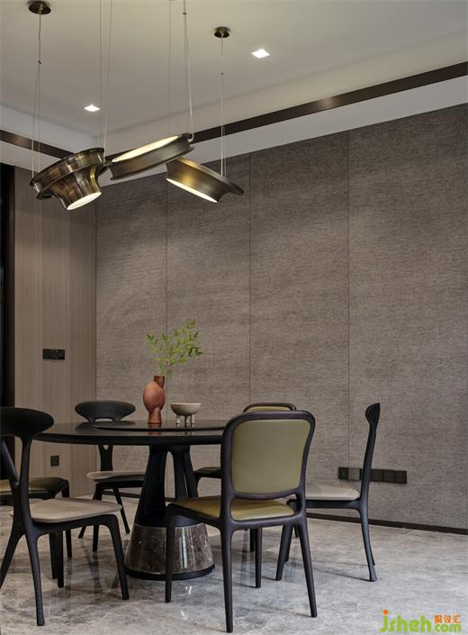 家和万事兴,“和”就是建立和谐家庭氛围的基础,以圆桌形态拉近了每个家庭成员的距离,别墅装饰选用简洁有特色的餐椅,让团聚用餐的亲朋好友自在对话。现代感造型的吊灯,优化了空间照明,同时展现出艺术感。