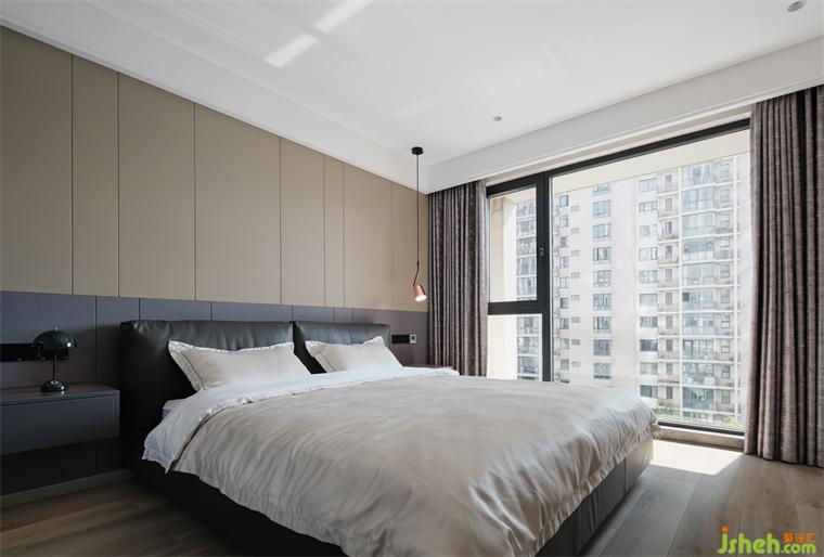 推门而入,阳光温暖着屋内的陈设,瞬间击中了心灵,悄然散发的光泽,模糊了室内外的感知关系,传递出亲切感与优雅感。大平层装修设计凭借上下分割的手法,塑造了床头背景的碰撞感与层次感,与窗框轮廓达成了延续之美。