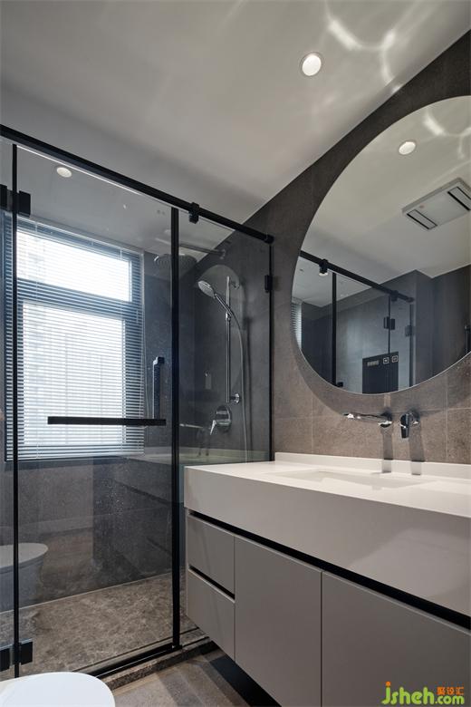 大平层装修设计通过玻璃反射的虚拟感,塑造餐厨场域的联系性,设置推拉门,触发隔而不绝的视感。进入烹饪空间,洁净之感扑面而来,拂去华而不实的装饰,仅以材质本真的精细感,构造一气呵成的操作动线与视觉系统。