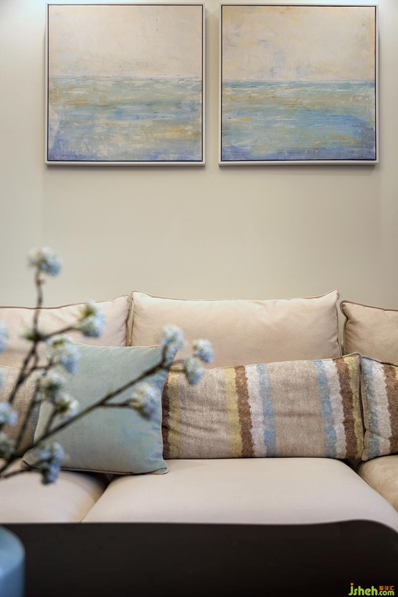 客厅的立面背景采用暖米色,立于小美式的休闲基调中,简单又统一,明亮又不失暖意,这也是业主最满意的地方。生活在大都市,时尚的都市气息免不了。用米白色沙发,点缀无彩深色抱枕,特色鲜明又不落俗套。设计公司