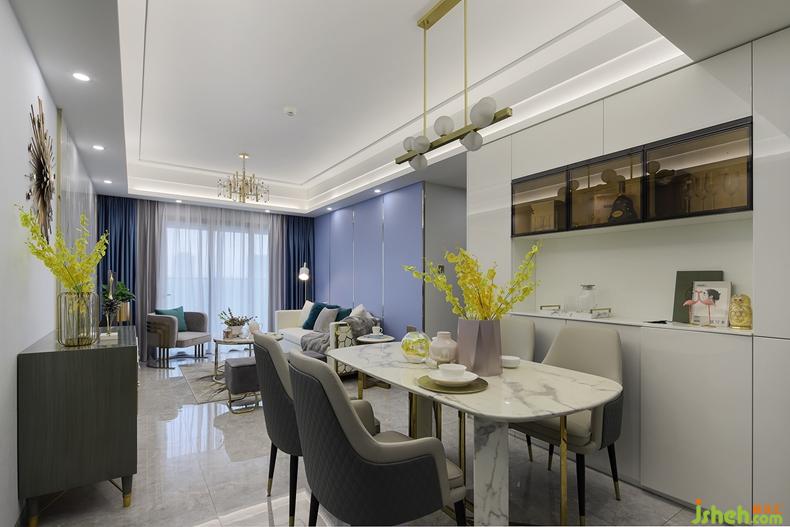 餐厅和厨房之间用活动移门对空间进行划分,独立便捷又完整。此外,设计师巧妙的利用墙面,将餐厅的展示、储藏空间融为一体,不仅能适当减轻厨房的收纳压力,还能当做备餐区,提高了空间的利用率。