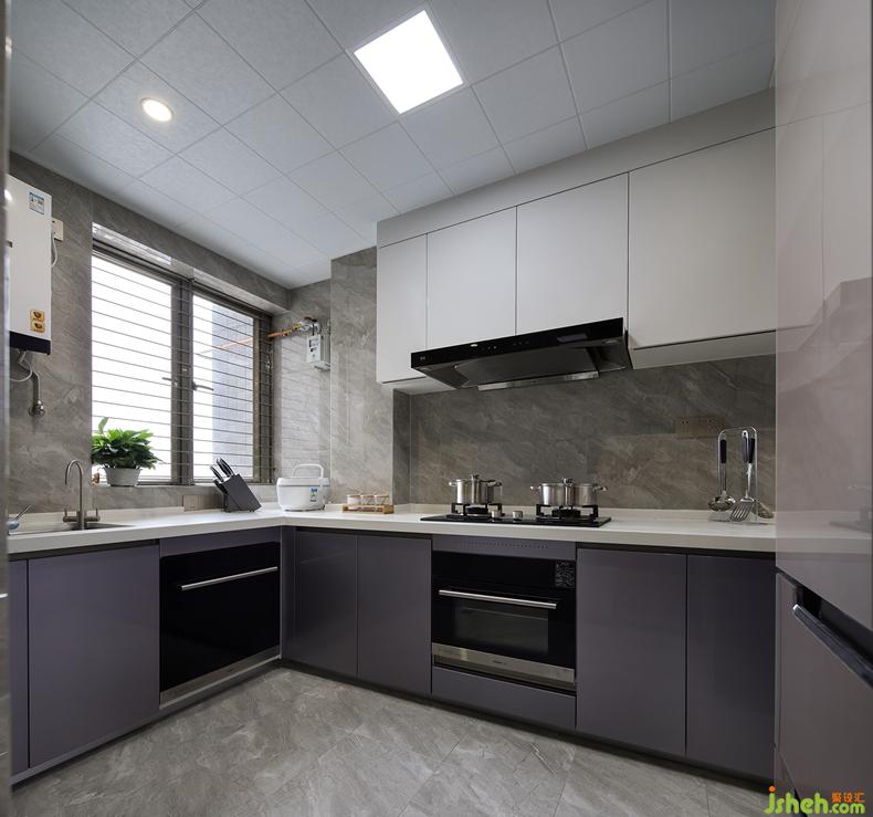 厨房素雅大气,功能分区恰到好处。白色吊柜整洁干净,柜门为按压式,既方便又省力。