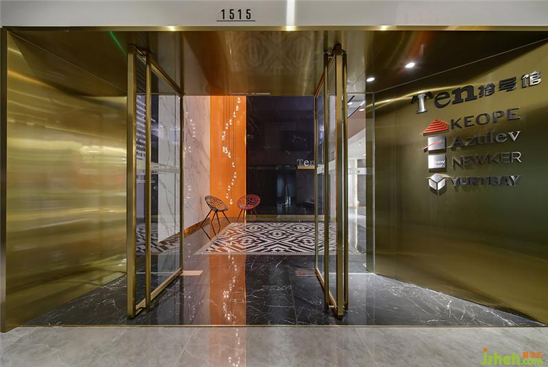 如果说建筑是一种空间文化,那外立面就是这种文化最直观的呈现。展厅设计时,外立面也是重点考虑区域,在确保整体美观的同时,还特别注重材质的运用。比如入门处选用的金色不锈钢材质,让美感因光而增色。