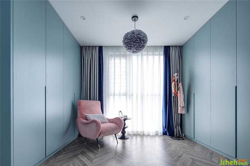 怀抱绿色,住进优雅。衣帽间以粉和绿的巧妙运用,突破了素色调的配色印象,大胆直观地营造舒缓的优美,将清新的文艺范儿绽放到极致。鸵鸟灰羽毛灯优雅高贵的气质犹如与生俱来,不张扬,可无论出现在哪,总能触动内心的柔软。
