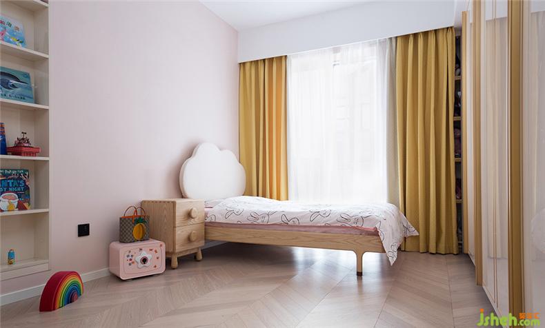 儿童房将收纳空间做得比较充足,玩具和图书都有自己的专属位置,就连与窗户转角的凹位处也做了一个玩具展示柜。室内设计师留出地面空间让孩子自由玩耍。