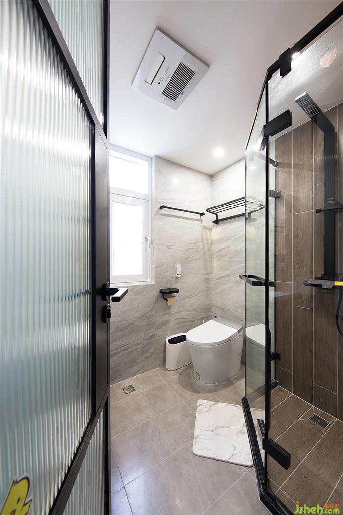 卫生间利用夹角位做了钻石型淋浴房,巧妙实现干湿分离,而墙地一体通铺的木纹砖也明显区别于其它位置的瓷砖,不仅颜值高,还极具时尚品味。